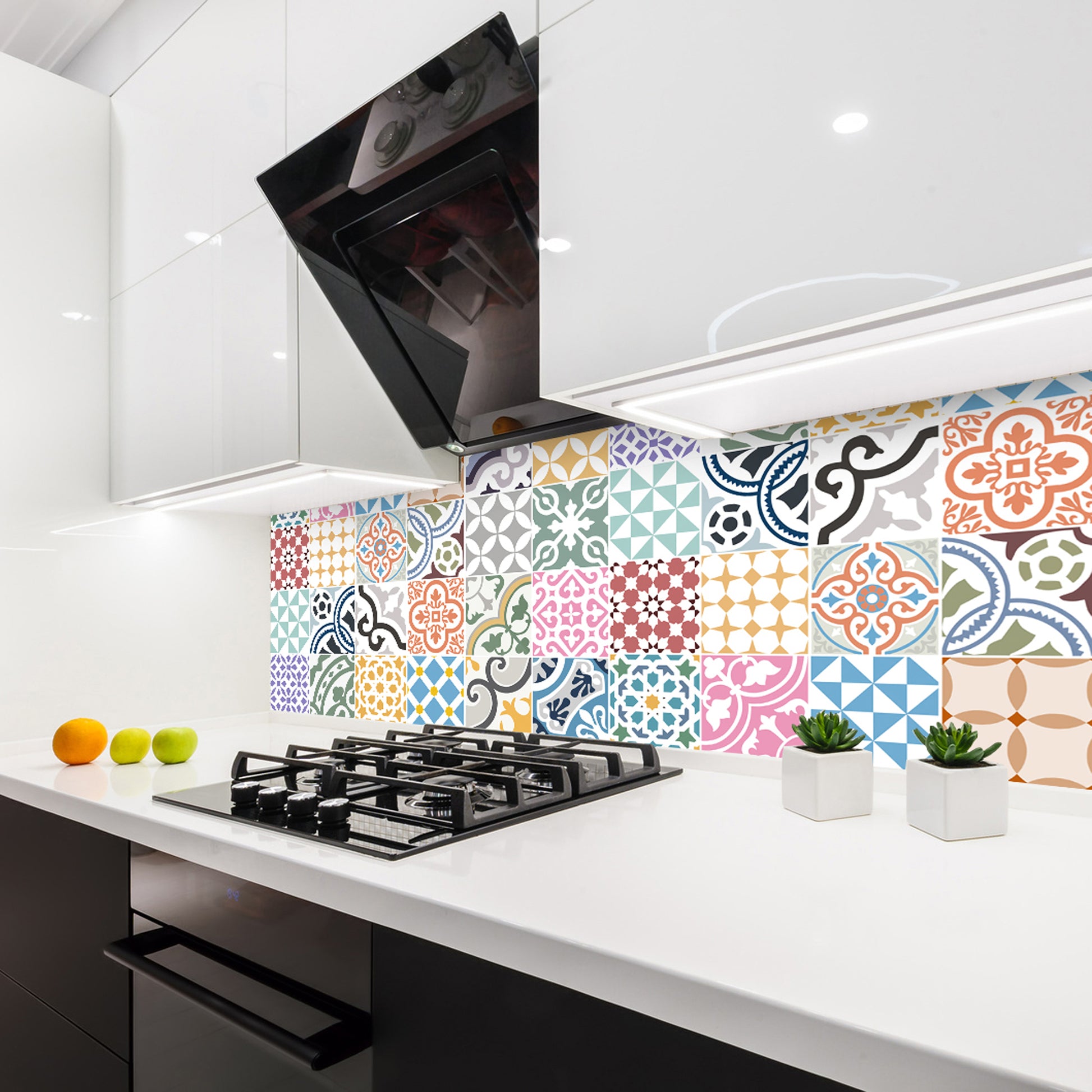 24 units of self-adhesive precut ecological stickers to decorate any flat surface (wall, kitchen front, sink, furniture). Water resistant and fire retardant.