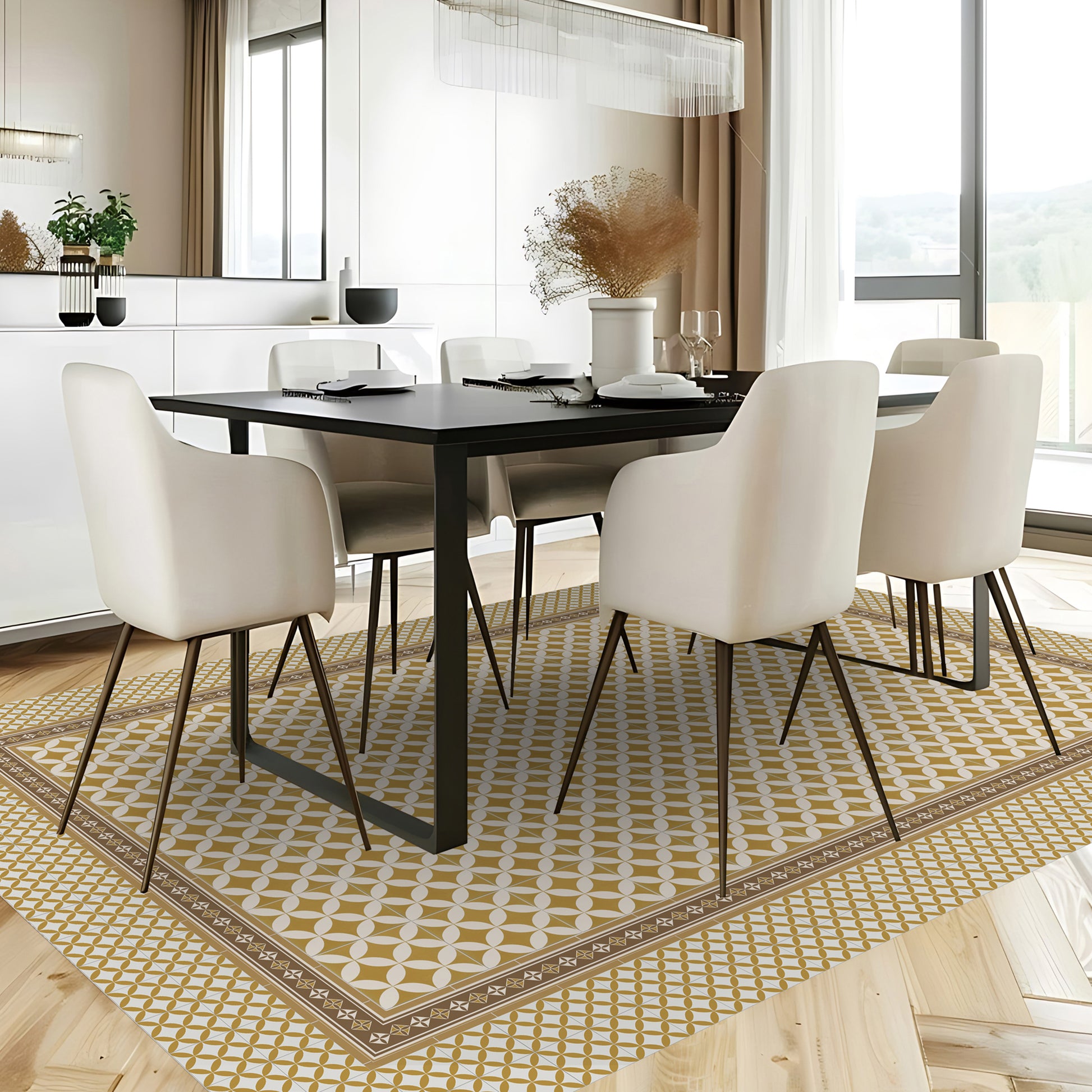 Nos tapis ne sont pas en tissu, ils sont en vinyle de haute qualité et durable. Le vinyle est une matière synthétique reconnue pour sa résistance et sa polyvalence. Contrairement aux tapis en tissu traditionnels, les tapis en vinyle offrent une impression photographique haute fidélité, recréant des textures naturelles avec une précision étonnante, comme le jute, le bois ou le marbre.