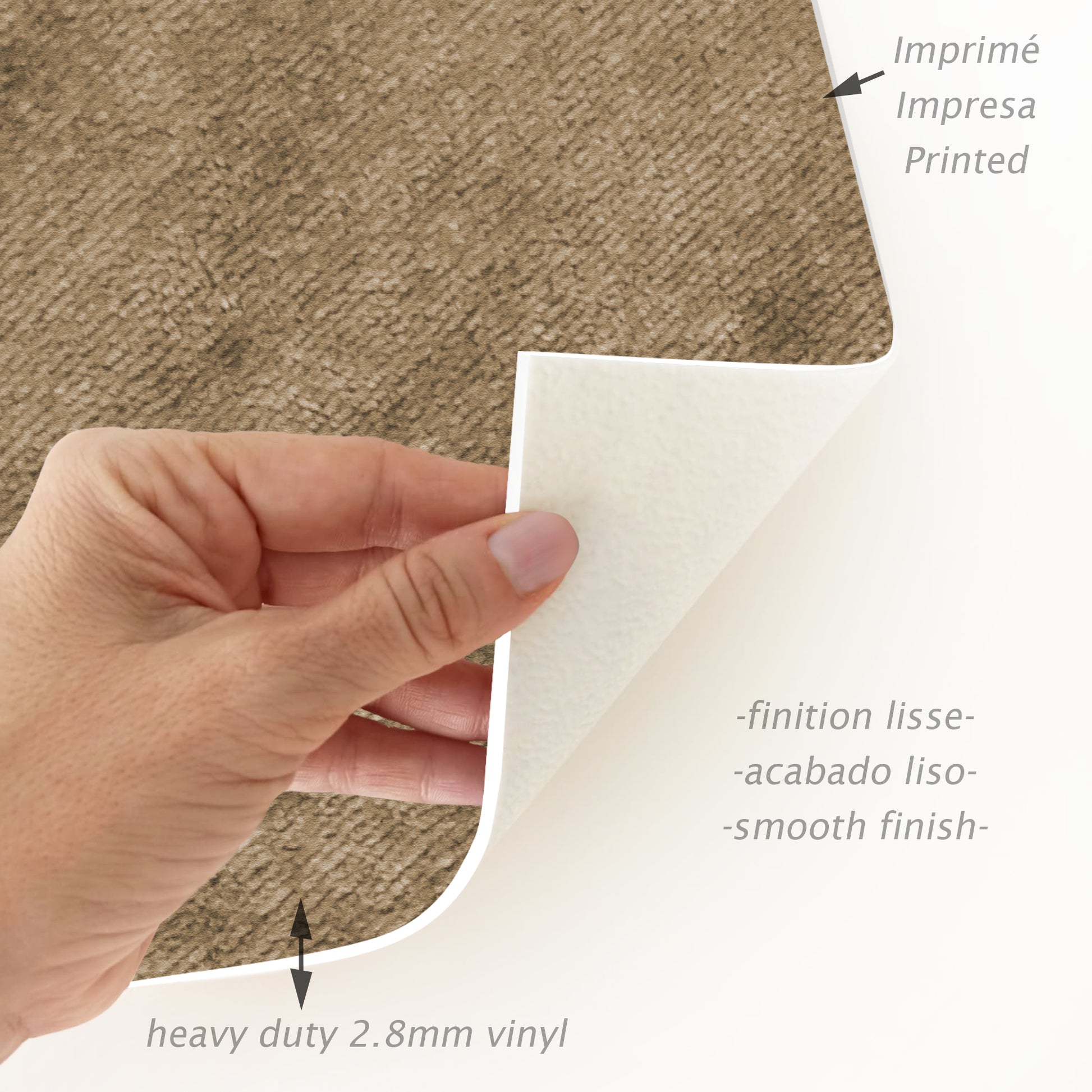 Nos tapis ne sont pas en tissu, ils sont en vinyle de haute qualité et durable. Le vinyle est une matière synthétique reconnue pour sa résistance et sa polyvalence. Contrairement aux tapis en tissu traditionnels, les tapis en vinyle offrent une impression photographique haute fidélité, recréant des textures naturelles avec une précision étonnante, comme le jute, le bois ou le marbre.