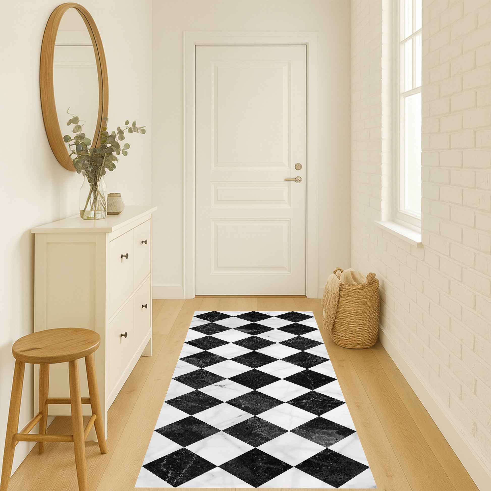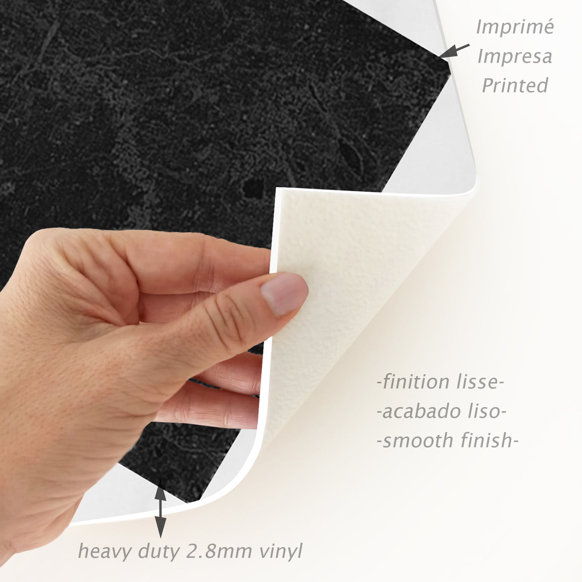 Nos tapis ne sont pas en tissu, ils sont en vinyle de haute qualité et durable. Le vinyle est une matière synthétique reconnue pour sa résistance et sa polyvalence. Contrairement aux tapis en tissu traditionnels, les tapis en vinyle offrent une impression photographique haute fidélité, recréant des textures naturelles avec une précision étonnante, comme le jute, le bois ou le marbre.