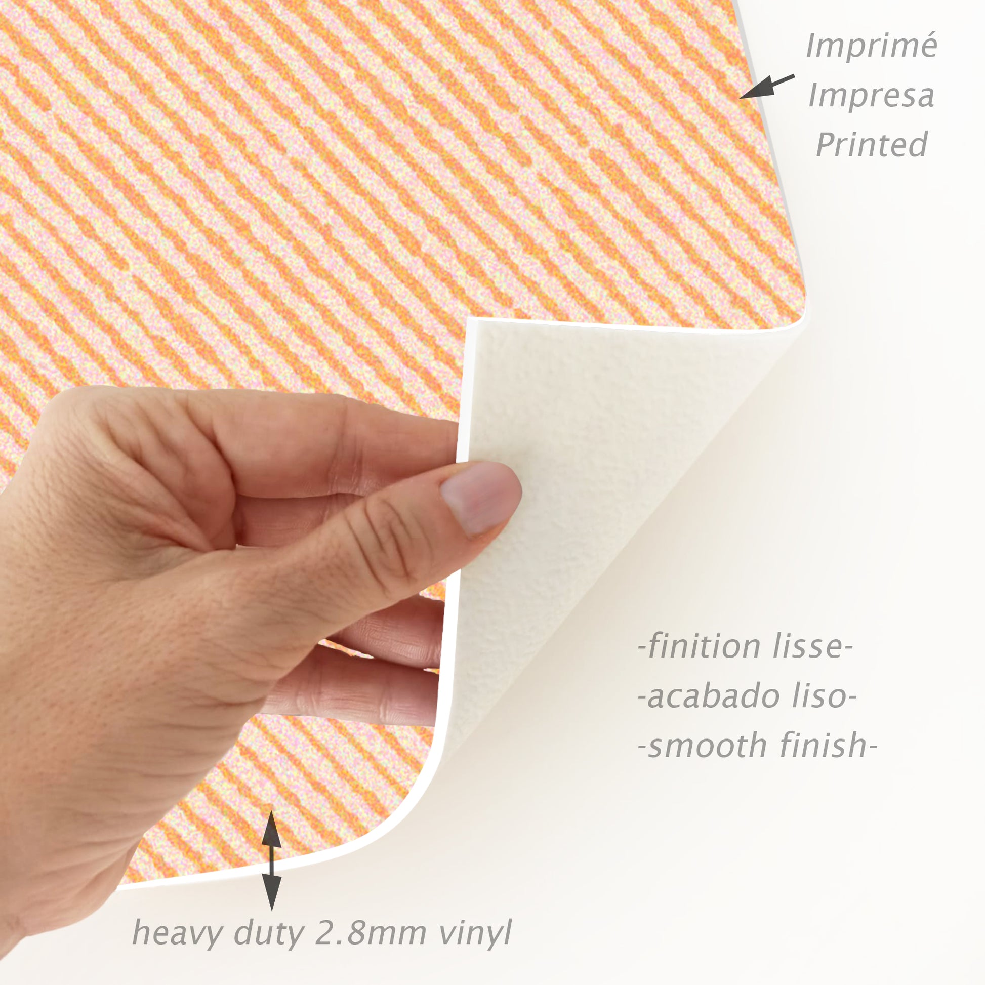 Nos tapis ne sont pas en tissu, ils sont en vinyle de haute qualité et durable. Le vinyle est une matière synthétique reconnue pour sa résistance et sa polyvalence. Contrairement aux tapis en tissu traditionnels, les tapis en vinyle offrent une impression photographique haute fidélité, recréant des textures naturelles avec une précision étonnante, comme le jute, le bois ou le marbre.