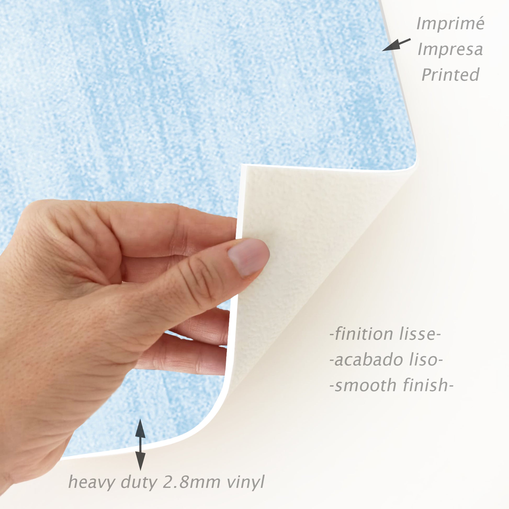 Nos tapis ne sont pas en tissu, ils sont en vinyle de haute qualité et durable. Le vinyle est une matière synthétique reconnue pour sa résistance et sa polyvalence. Contrairement aux tapis en tissu traditionnels, les tapis en vinyle offrent une impression photographique haute fidélité, recréant des textures naturelles avec une précision étonnante, comme le jute, le bois ou le marbre.