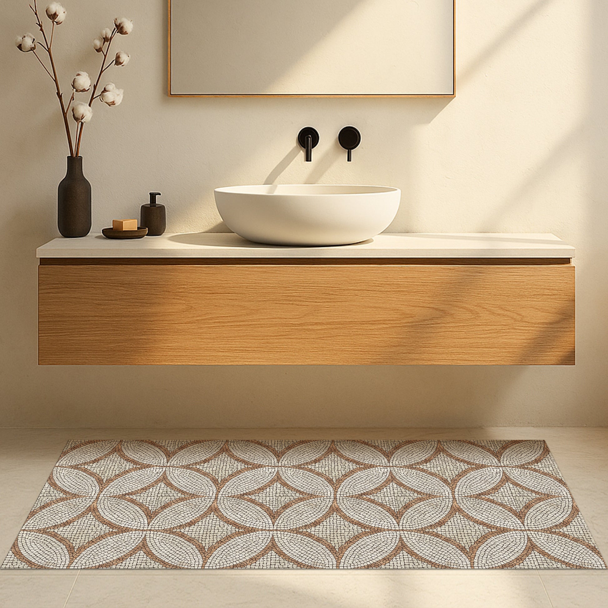Nos tapis ne sont pas en tissu, ils sont en vinyle de haute qualité et durable. Le vinyle est une matière synthétique reconnue pour sa résistance et sa polyvalence. Contrairement aux tapis en tissu traditionnels, les tapis en vinyle offrent une impression photographique haute fidélité, recréant des textures naturelles avec une précision étonnante, comme le jute, le bois ou le marbre.