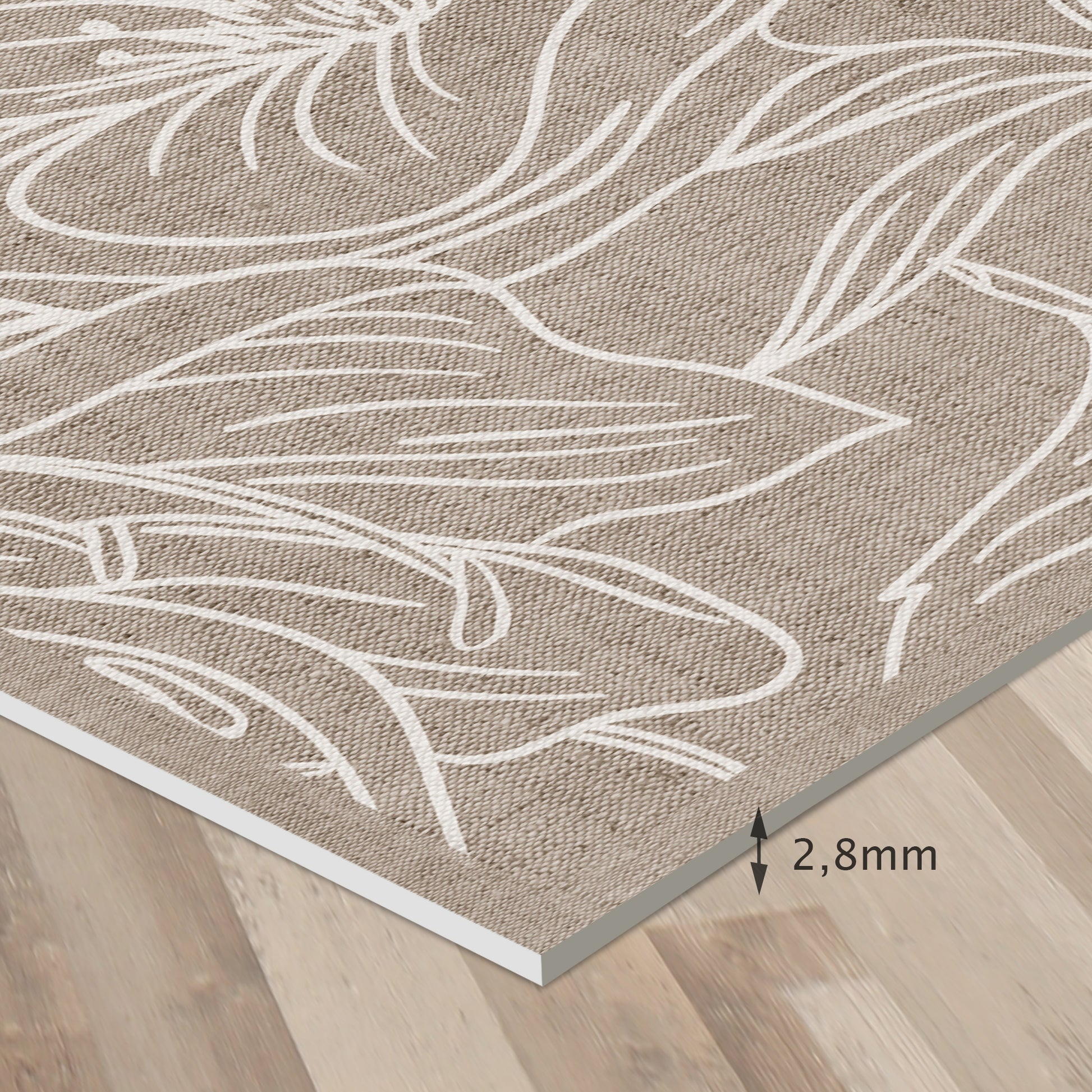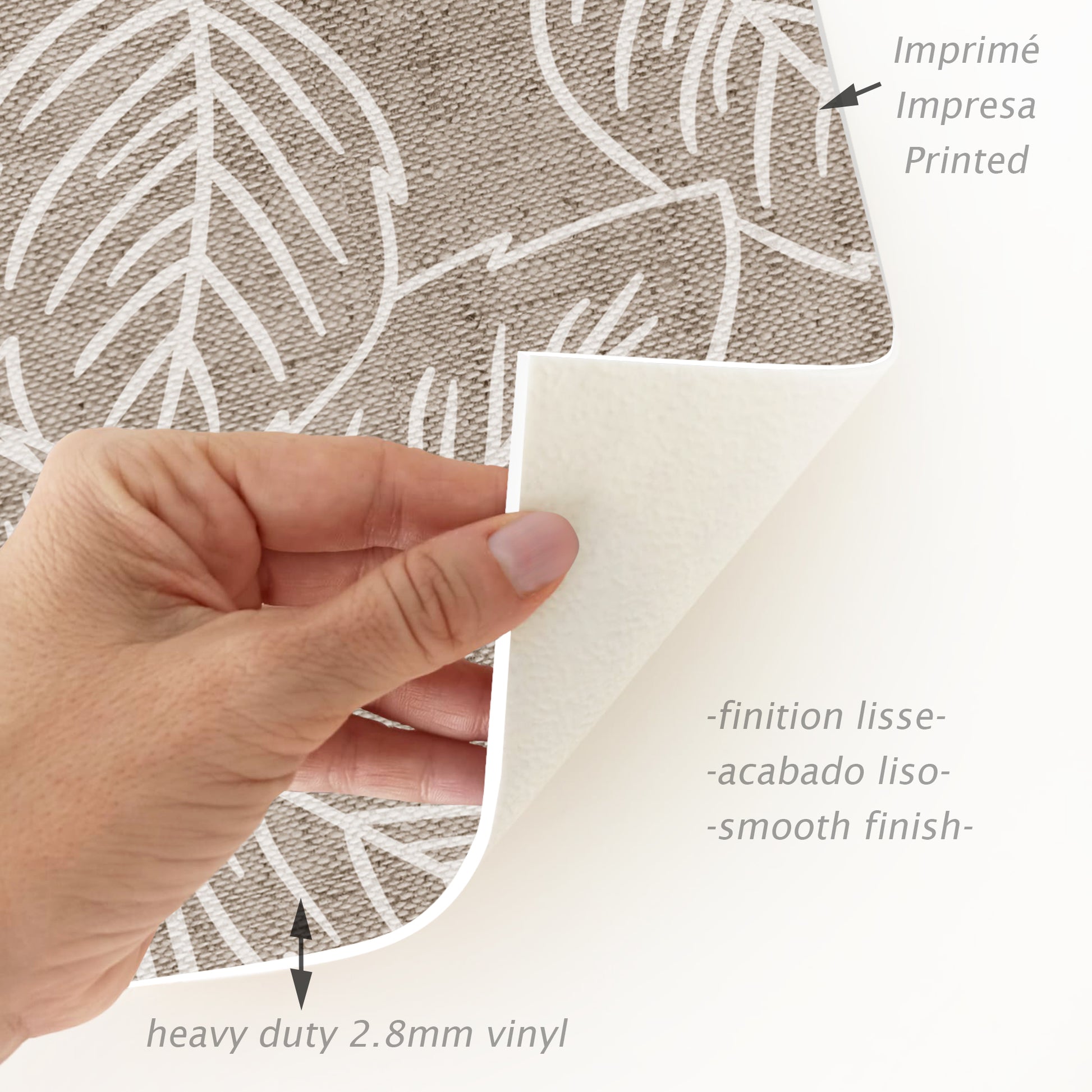 Nos tapis ne sont pas en tissu, ils sont en vinyle de haute qualité et durable. Le vinyle est une matière synthétique reconnue pour sa résistance et sa polyvalence. Contrairement aux tapis en tissu traditionnels, les tapis en vinyle offrent une impression photographique haute fidélité, recréant des textures naturelles avec une précision étonnante, comme le jute, le bois ou le marbre.