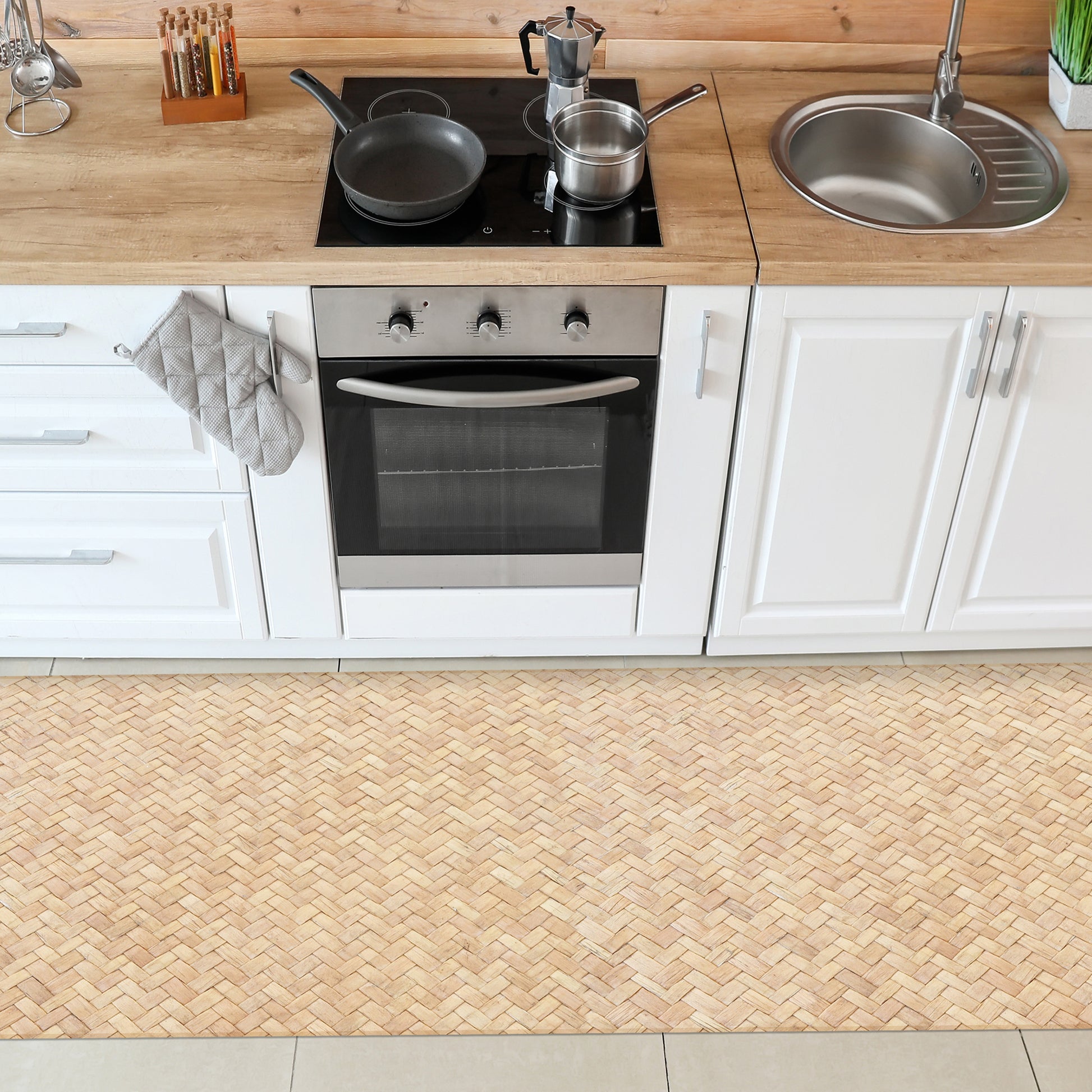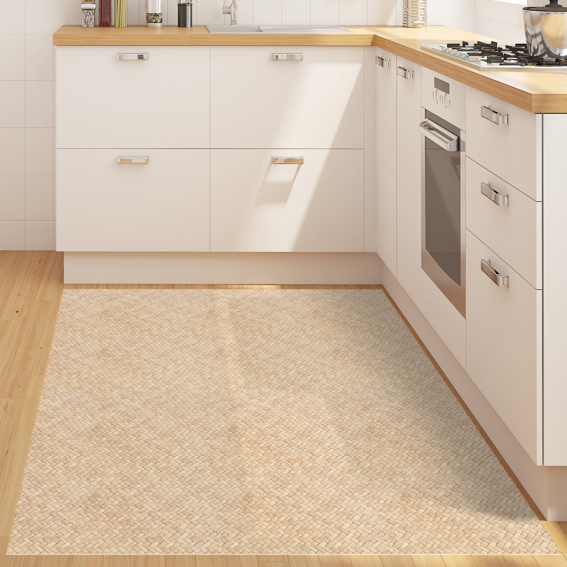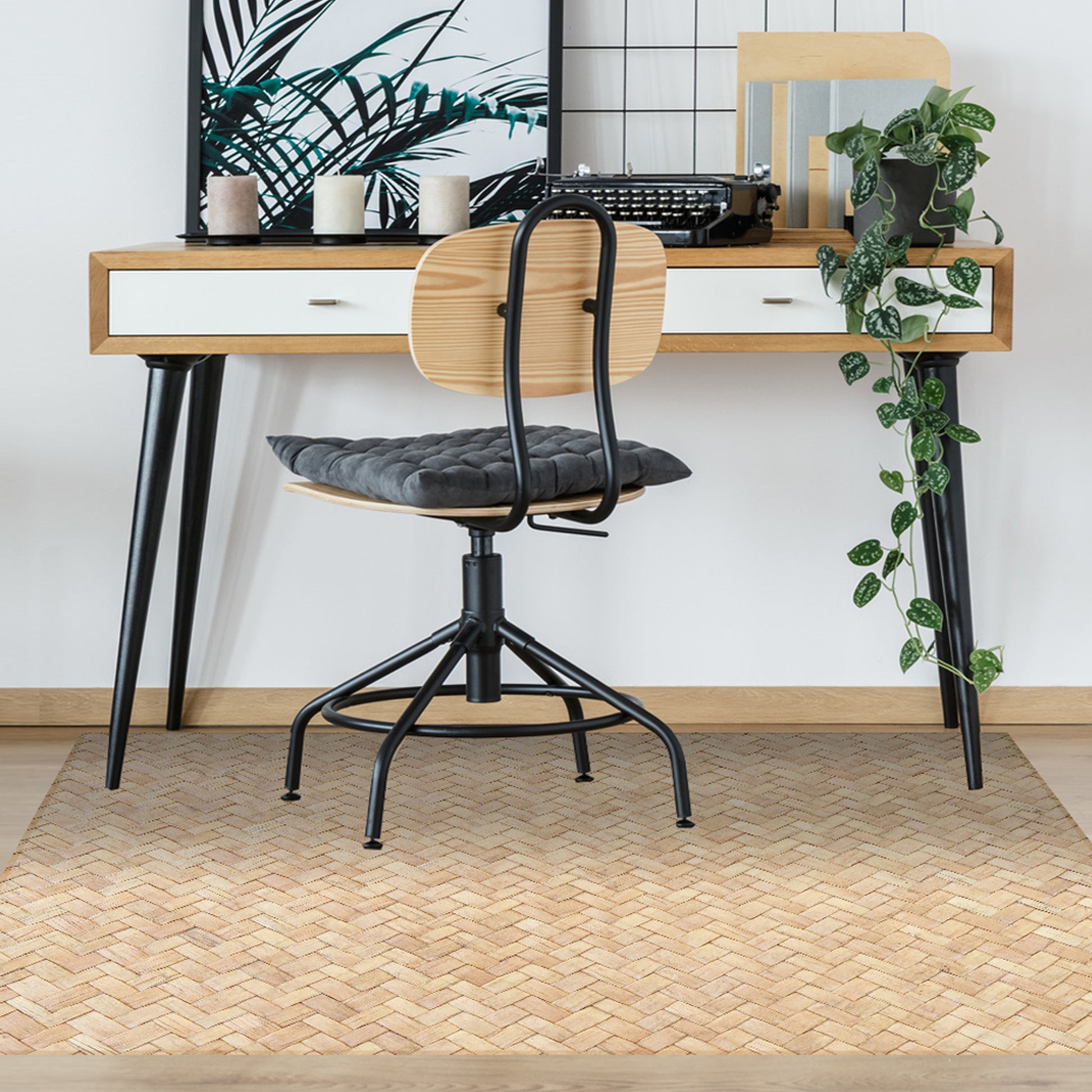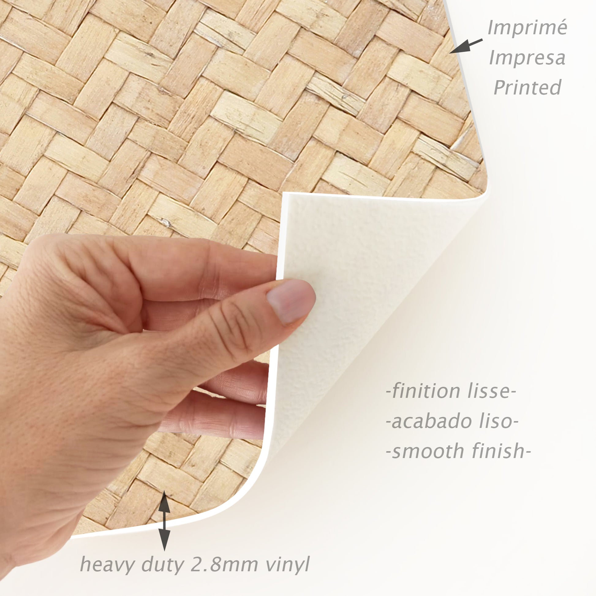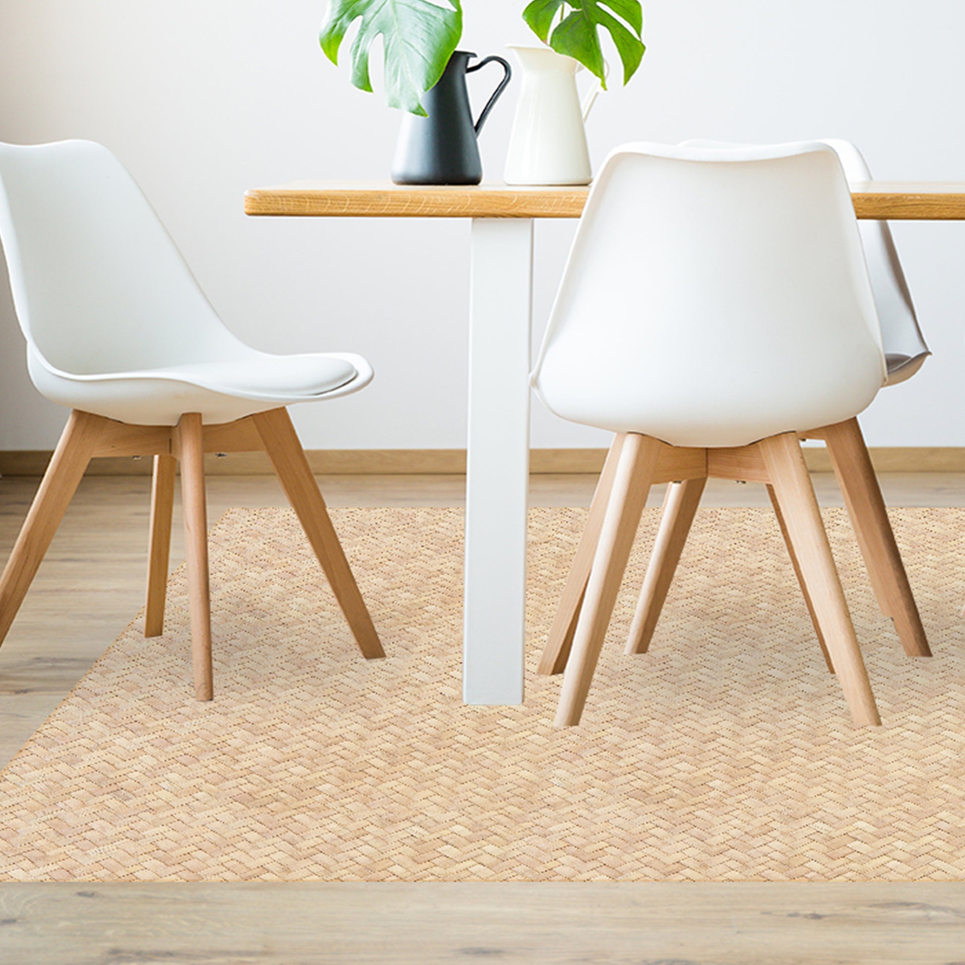 Nos tapis ne sont pas en tissu, ils sont en vinyle de haute qualité et durable. Le vinyle est une matière synthétique reconnue pour sa résistance et sa polyvalence. Contrairement aux tapis en tissu traditionnels, les tapis en vinyle offrent une impression photographique haute fidélité, recréant des textures naturelles avec une précision étonnante, comme le jute, le bois ou le marbre.
