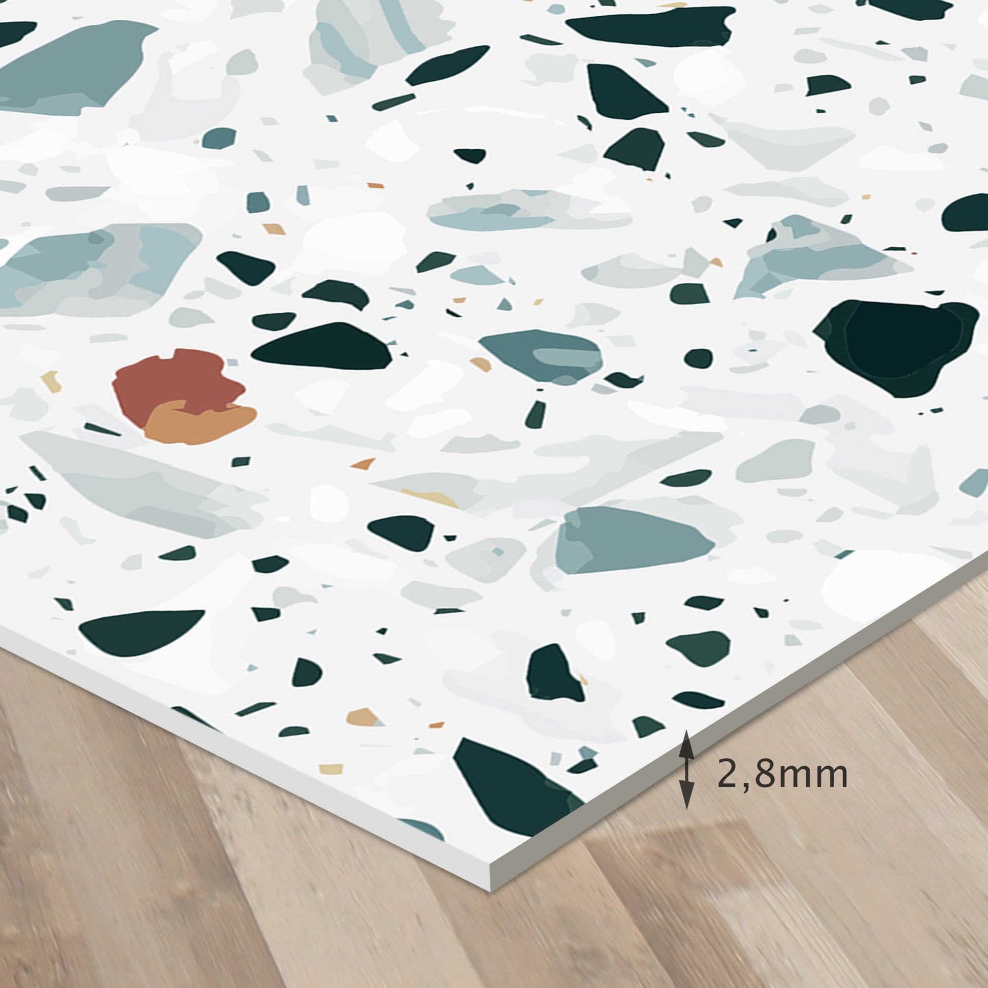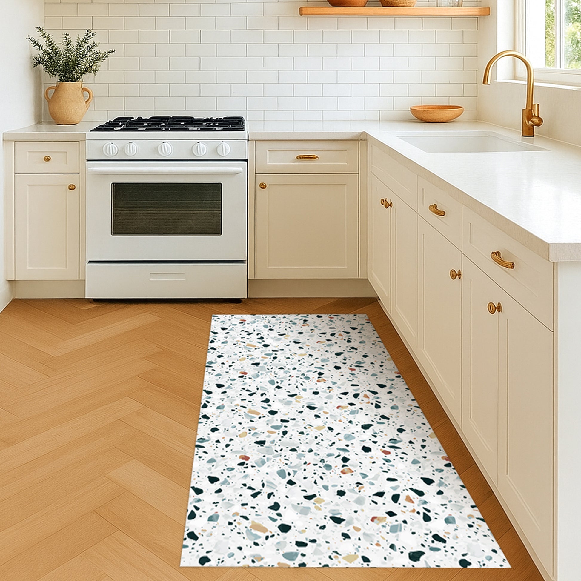 Nos tapis ne sont pas en tissu, ils sont en vinyle de haute qualité et durable. Le vinyle est une matière synthétique reconnue pour sa résistance et sa polyvalence. Contrairement aux tapis en tissu traditionnels, les tapis en vinyle offrent une impression photographique haute fidélité, recréant des textures naturelles avec une précision étonnante, comme le jute, le bois ou le marbre.