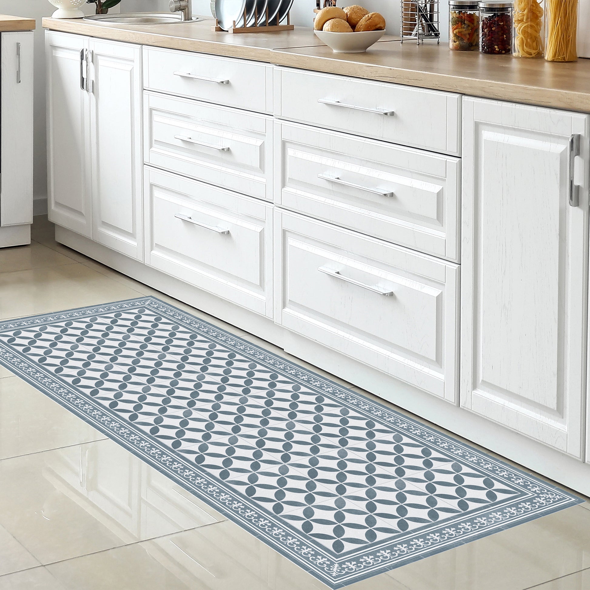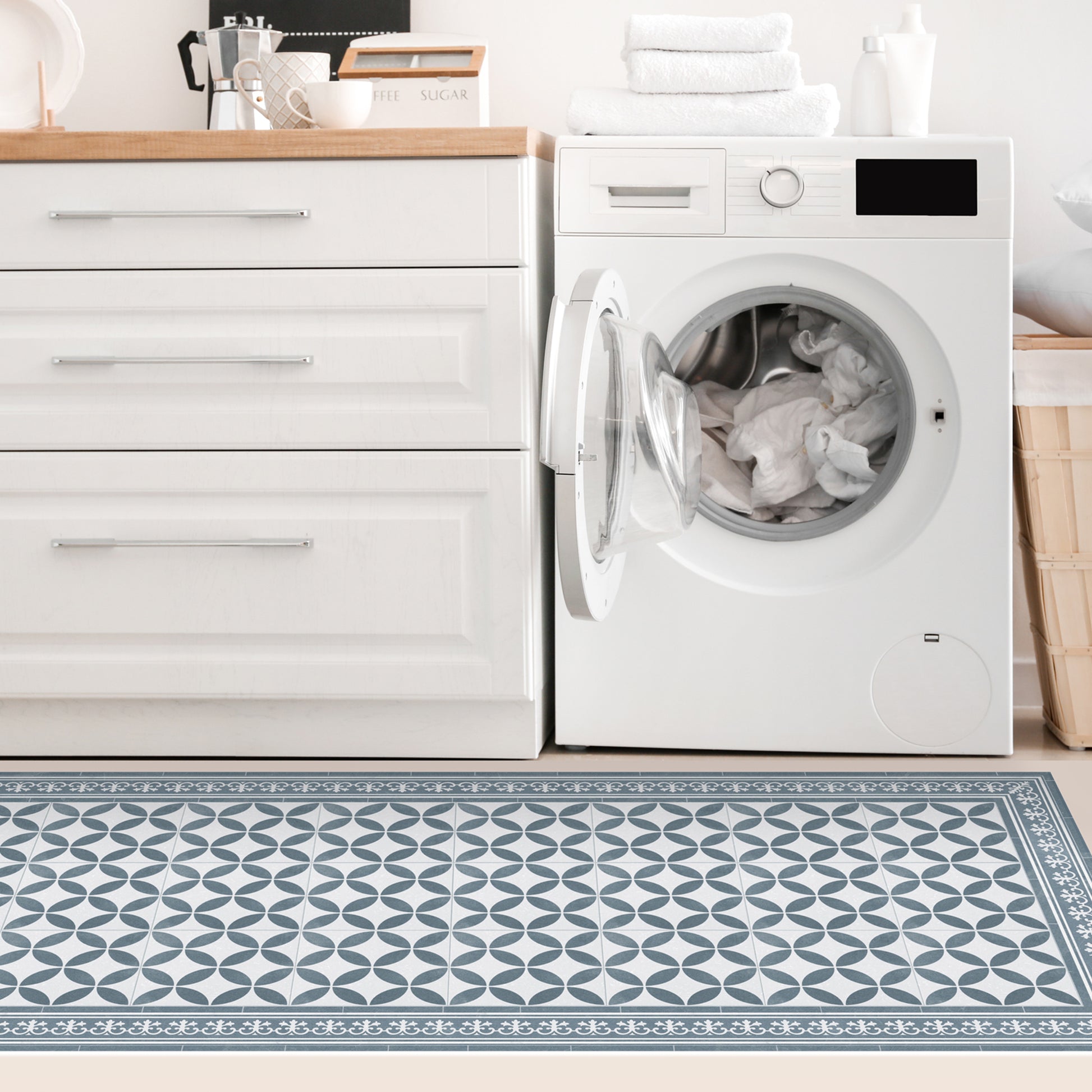 Nos tapis ne sont pas en tissu, ils sont en vinyle de haute qualité et durable. Le vinyle est une matière synthétique reconnue pour sa résistance et sa polyvalence. Contrairement aux tapis en tissu traditionnels, les tapis en vinyle offrent une impression photographique haute fidélité, recréant des textures naturelles avec une précision étonnante, comme le jute, le bois ou le marbre.