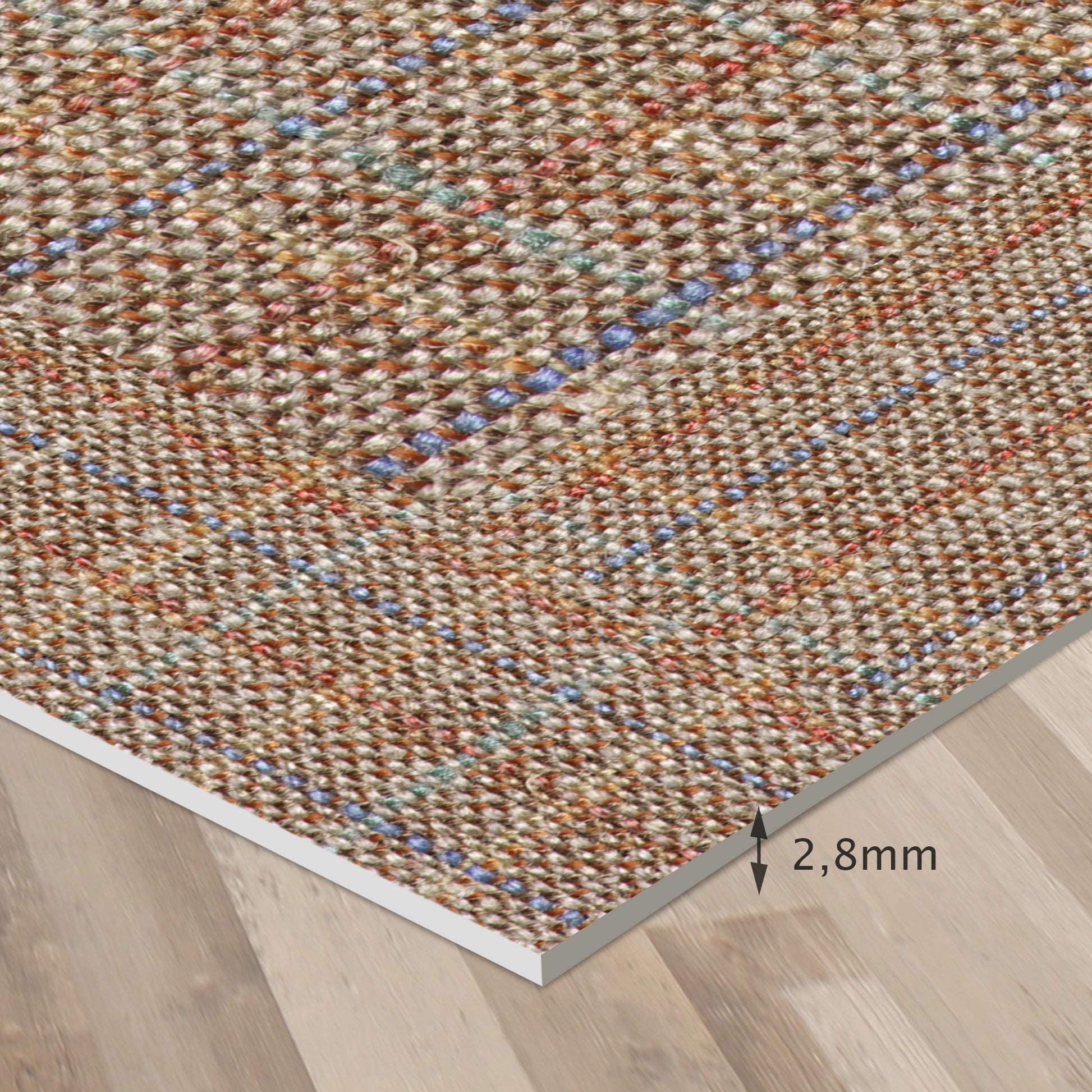 Nos tapis ne sont pas en tissu, ils sont en vinyle de haute qualité et durable. Le vinyle est une matière synthétique reconnue pour sa résistance et sa polyvalence. Contrairement aux tapis en tissu traditionnels, les tapis en vinyle offrent une impression photographique haute fidélité, recréant des textures naturelles avec une précision étonnante, comme le jute, le bois ou le marbre.