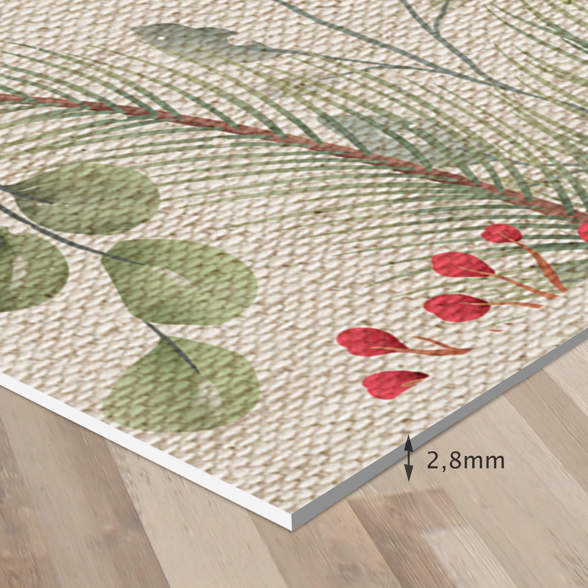 Nos tapis ne sont pas en tissu, ils sont en vinyle de haute qualité et durable. Le vinyle est une matière synthétique reconnue pour sa résistance et sa polyvalence. Contrairement aux tapis en tissu traditionnels, les tapis en vinyle offrent une impression photographique haute fidélité, recréant des textures naturelles avec une précision étonnante, comme le jute, le bois ou le marbre.