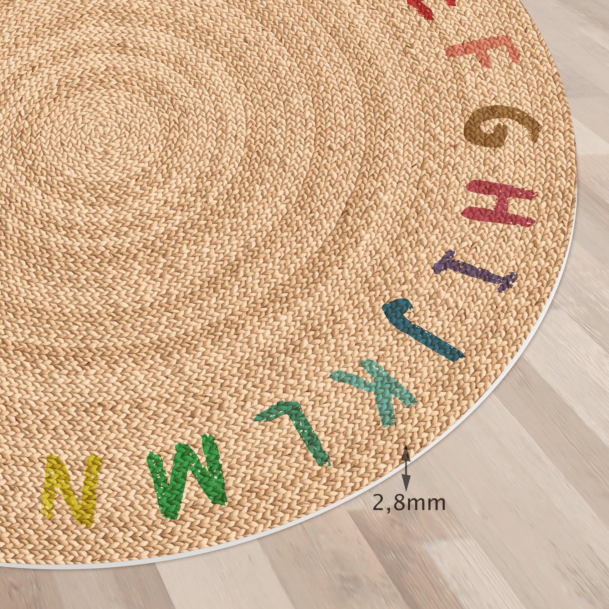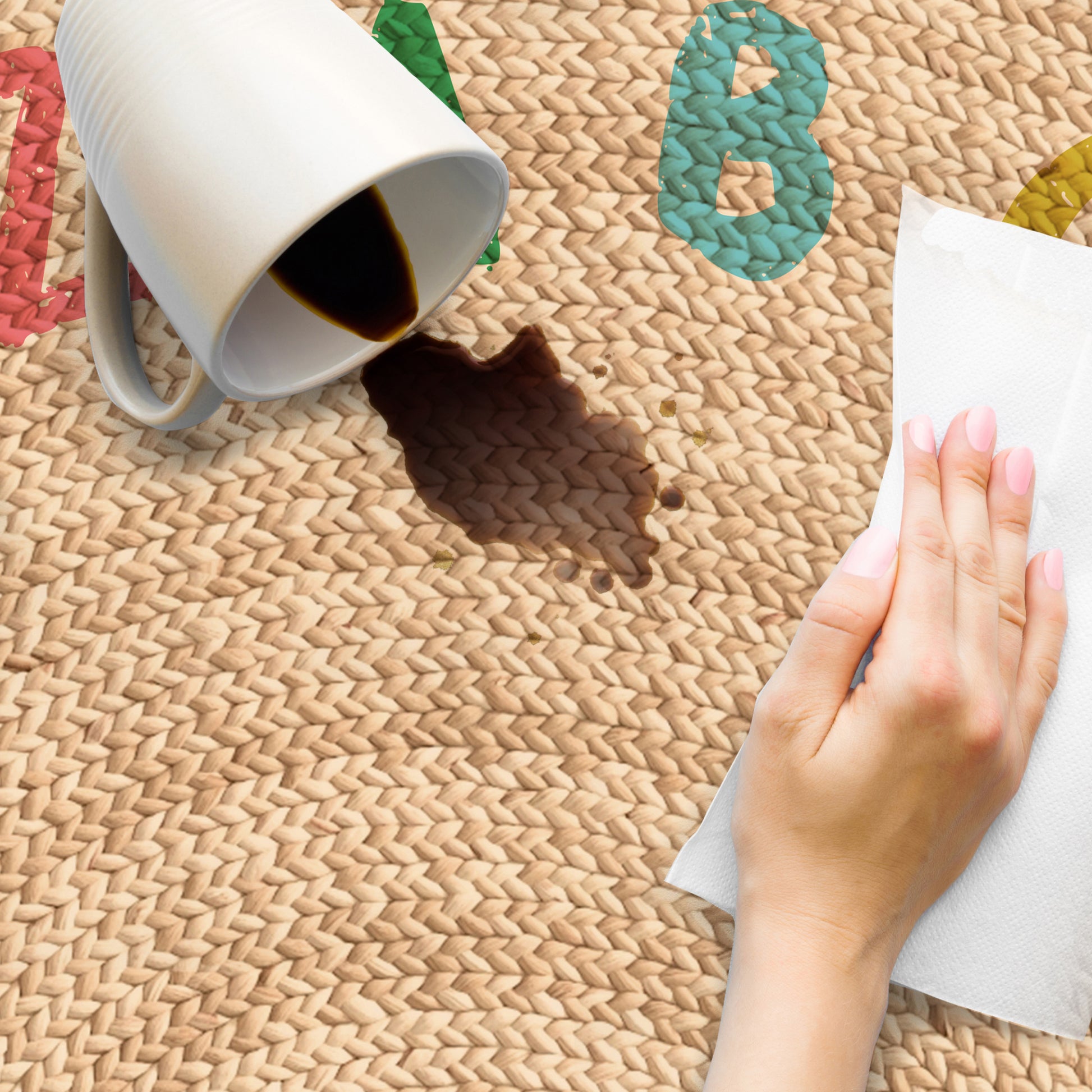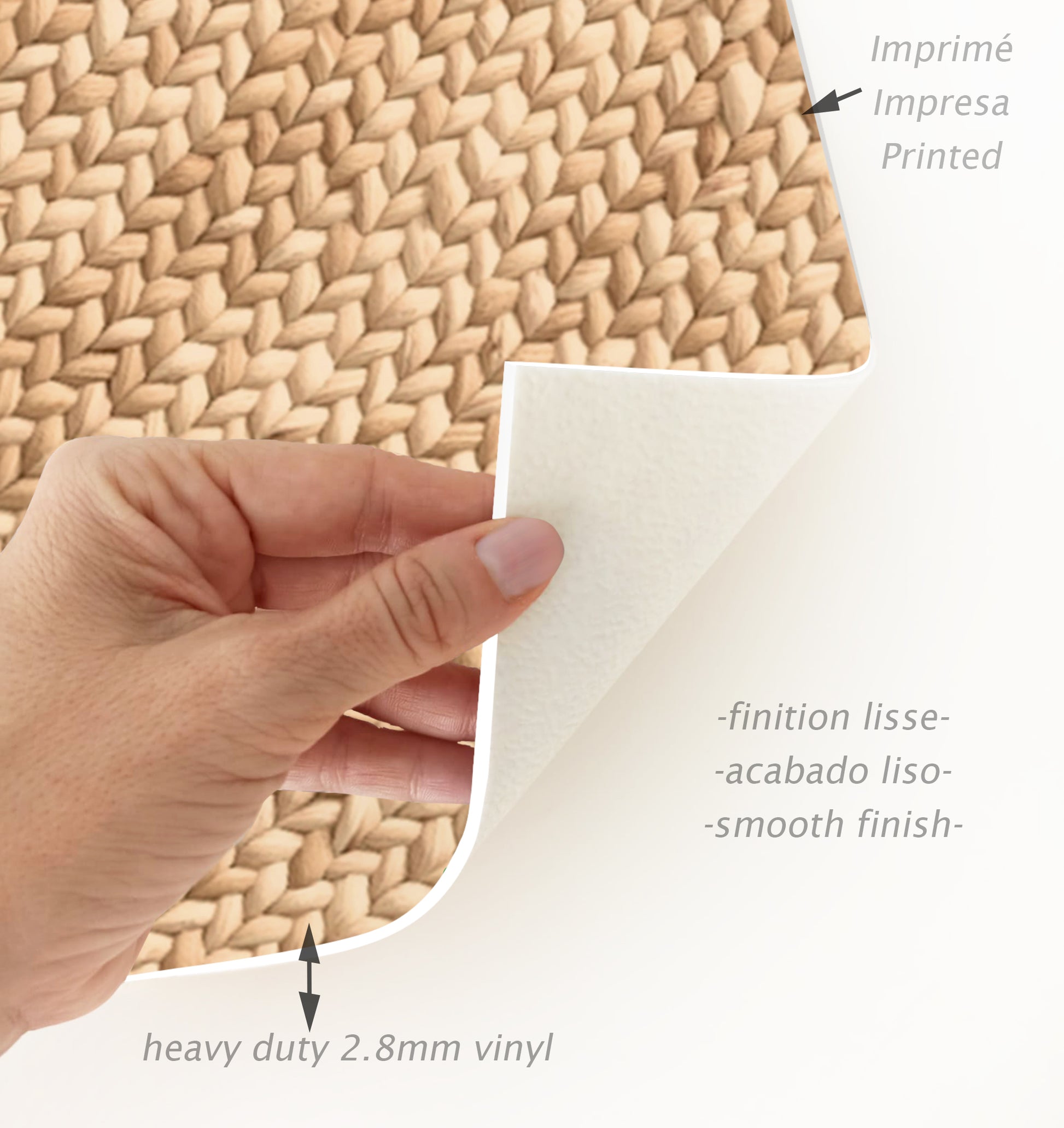 Nos tapis ne sont pas en tissu, ils sont en vinyle de haute qualité et durable. Le vinyle est une matière synthétique reconnue pour sa résistance et sa polyvalence. Contrairement aux tapis en tissu traditionnels, les tapis en vinyle offrent une impression photographique haute fidélité, recréant des textures naturelles avec une précision étonnante, comme le jute, le bois ou le marbre.