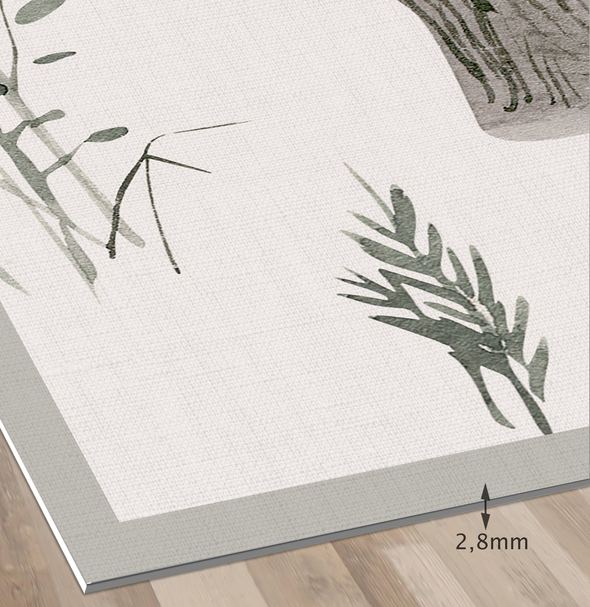 Nos tapis ne sont pas en tissu, ils sont en vinyle de haute qualité et durable. Le vinyle est une matière synthétique reconnue pour sa résistance et sa polyvalence. Contrairement aux tapis en tissu traditionnels, les tapis en vinyle offrent une impression photographique haute fidélité, recréant des textures naturelles avec une précision étonnante, comme le jute, le bois ou le marbre.
