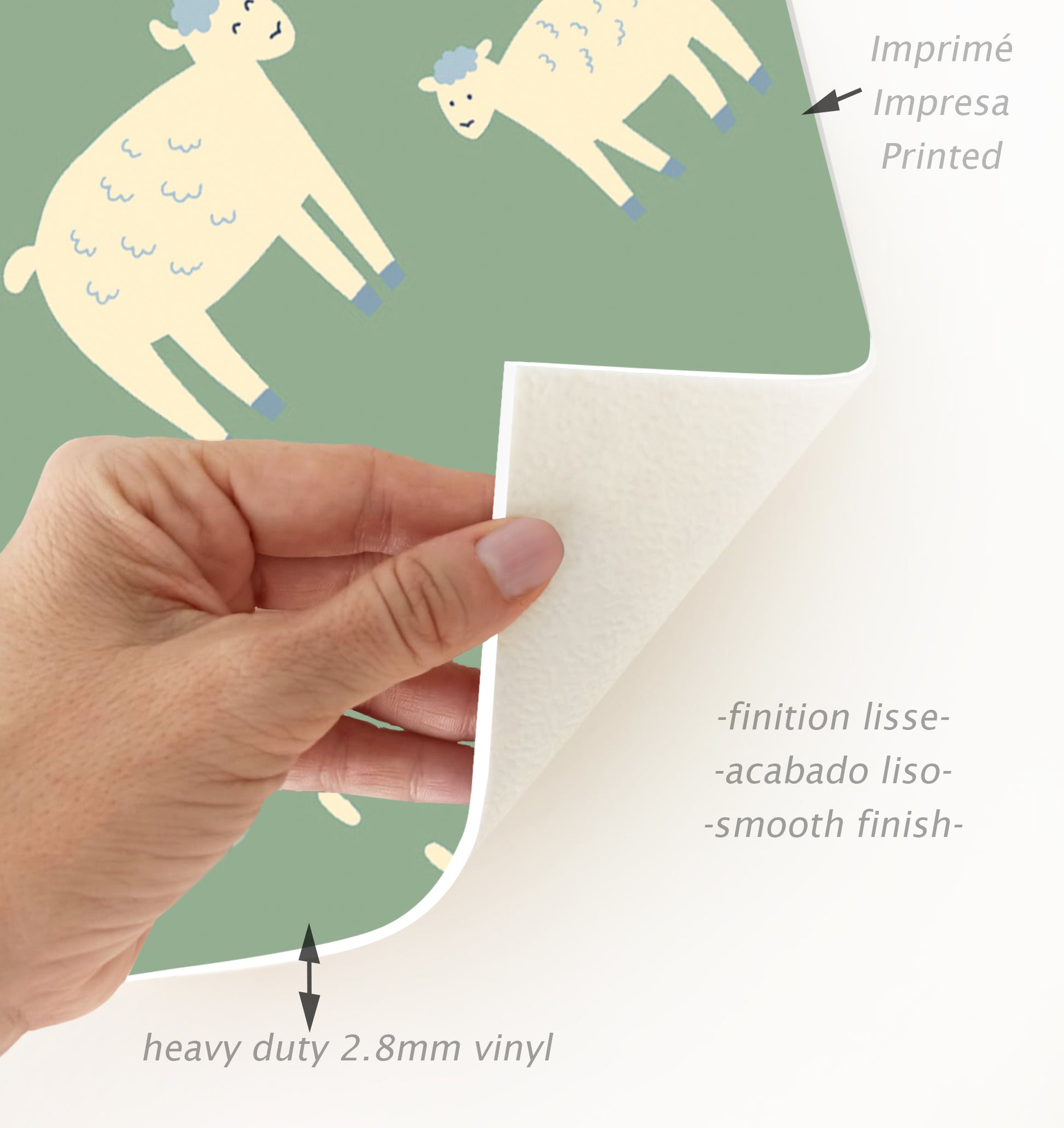 • Le matériau est antidérapant, hypoallergénique, antimicrobien, imperméable, isolant thermique et ignifuge. Il est exempt de phtalates et de BPA et imprimé avec des encres durables, contribuant ainsi à une maison plus sûre et sans produits toxiques.