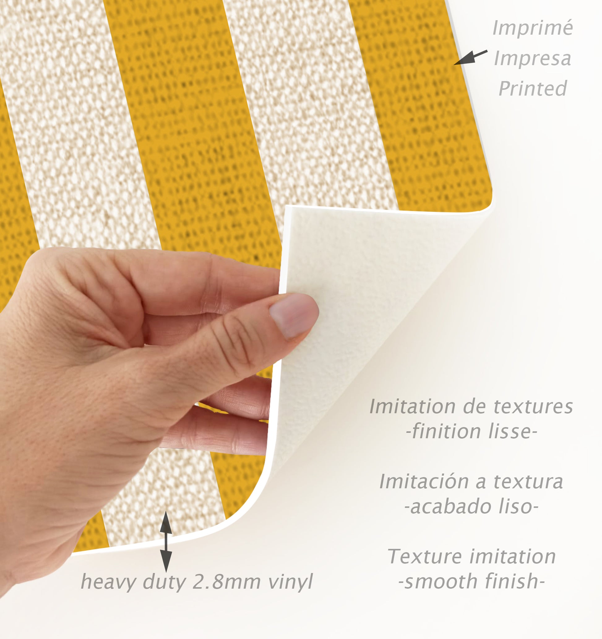 Nos tapis ne sont pas en tissu, ils sont en vinyle de haute qualité et durable. Le vinyle est une matière synthétique reconnue pour sa résistance et sa polyvalence. Contrairement aux tapis en tissu traditionnels, les tapis en vinyle offrent une impression photographique haute fidélité, recréant des textures naturelles avec une précision étonnante, comme le jute, le bois ou le marbre.
