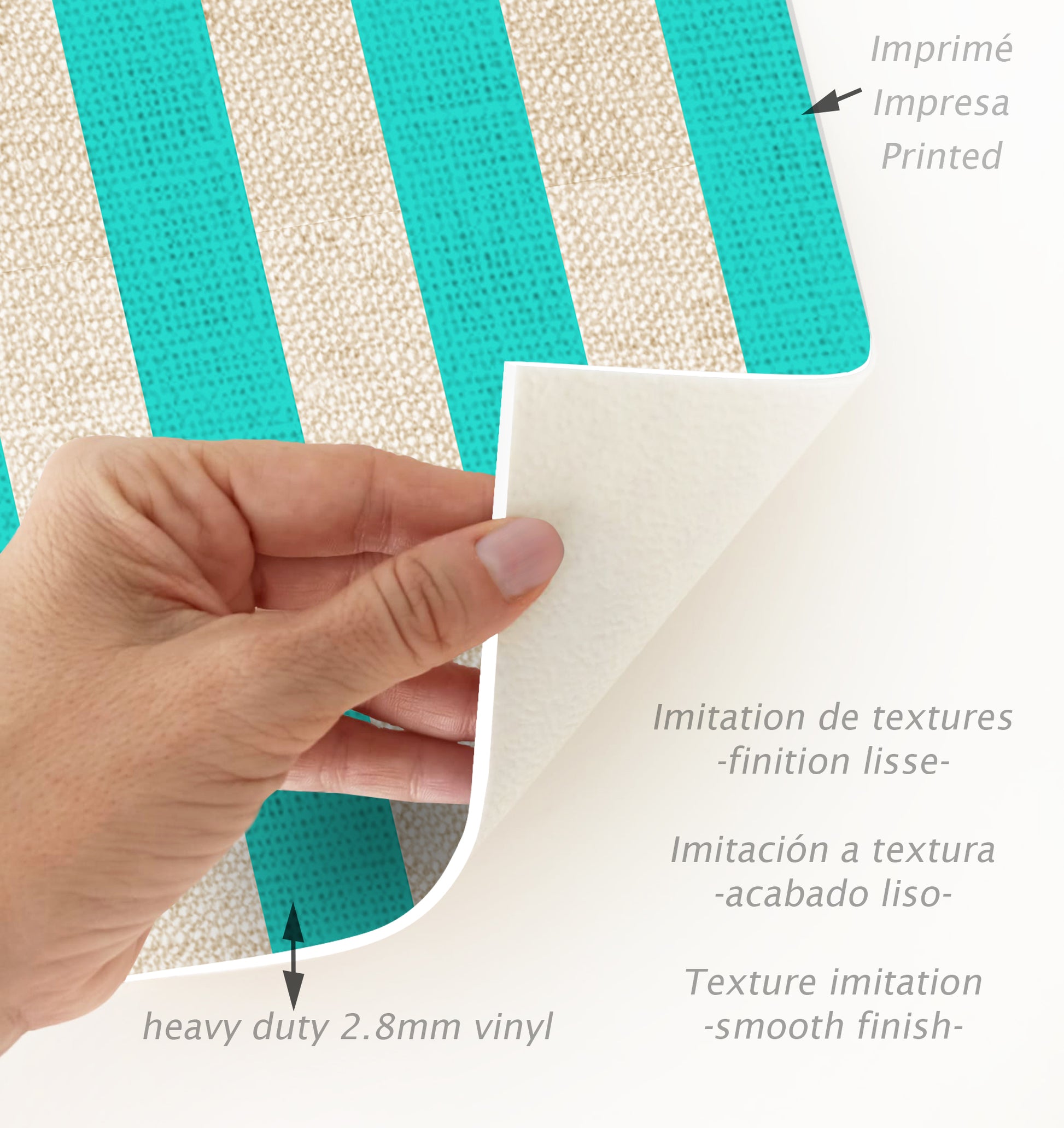 • Le matériau est antidérapant, hypoallergénique, antimicrobien, imperméable, isolant thermique et ignifuge. Il est exempt de phtalates et de BPA et imprimé avec des encres durables, contribuant ainsi à une maison plus sûre et sans produits toxiques.