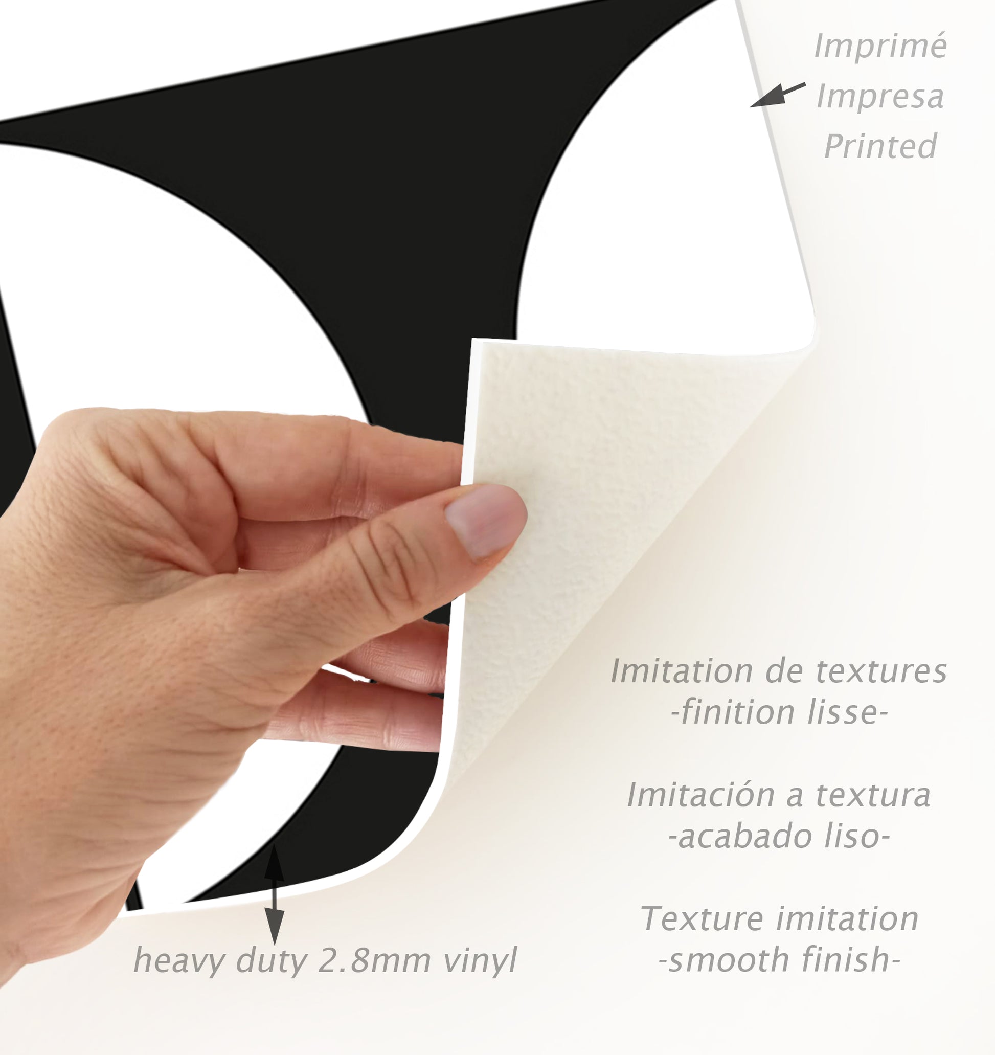 Nos tapis ne sont pas en tissu, ils sont en vinyle de haute qualité et durable. Le vinyle est une matière synthétique reconnue pour sa résistance et sa polyvalence. Contrairement aux tapis en tissu traditionnels, les tapis en vinyle offrent une impression photographique haute fidélité, recréant des textures naturelles avec une précision étonnante, comme le jute, le bois ou le marbre.