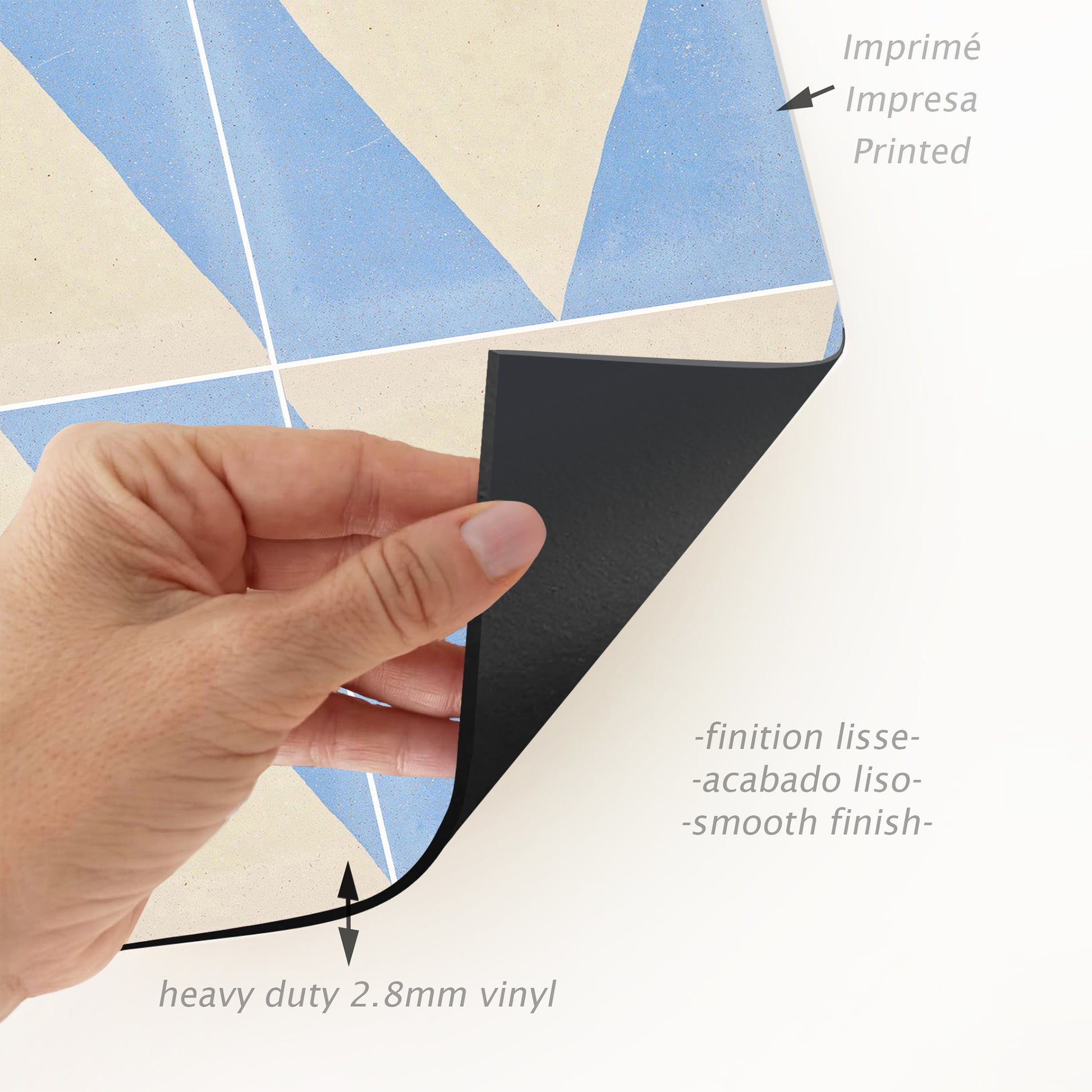 Nos tapis ne sont pas en tissu, ils sont en vinyle de haute qualité et durable. Le vinyle est une matière synthétique reconnue pour sa résistance et sa polyvalence. Contrairement aux tapis en tissu traditionnels, les tapis en vinyle offrent une impression photographique haute fidélité, recréant des textures naturelles avec une précision étonnante, comme le jute, le bois ou le marbre.