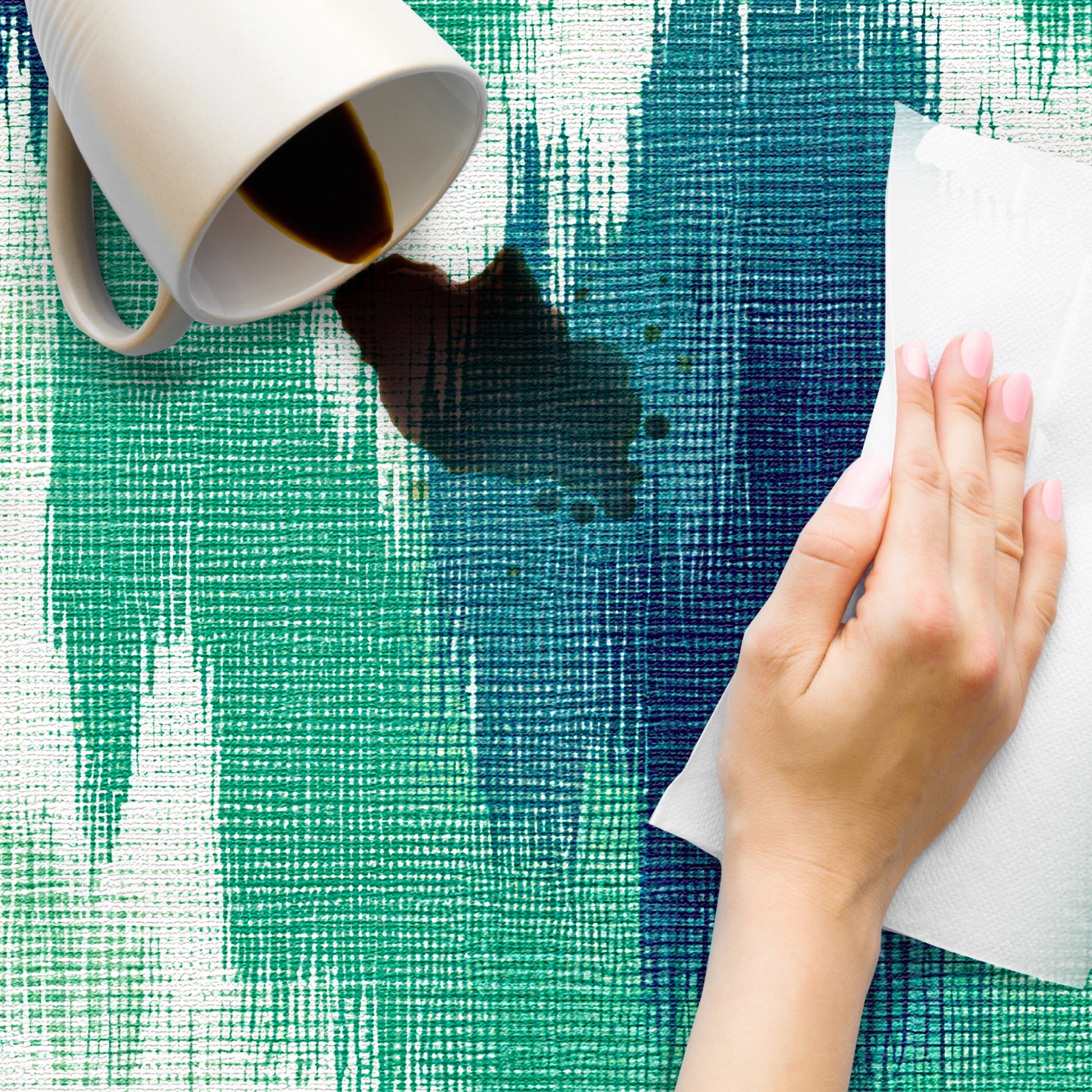 Nos tapis ne sont pas en tissu, ils sont en vinyle de haute qualité et durable. Le vinyle est une matière synthétique reconnue pour sa résistance et sa polyvalence. Contrairement aux tapis en tissu traditionnels, les tapis en vinyle offrent une impression photographique haute fidélité, recréant des textures naturelles avec une précision étonnante, comme le jute, le bois ou le marbre.