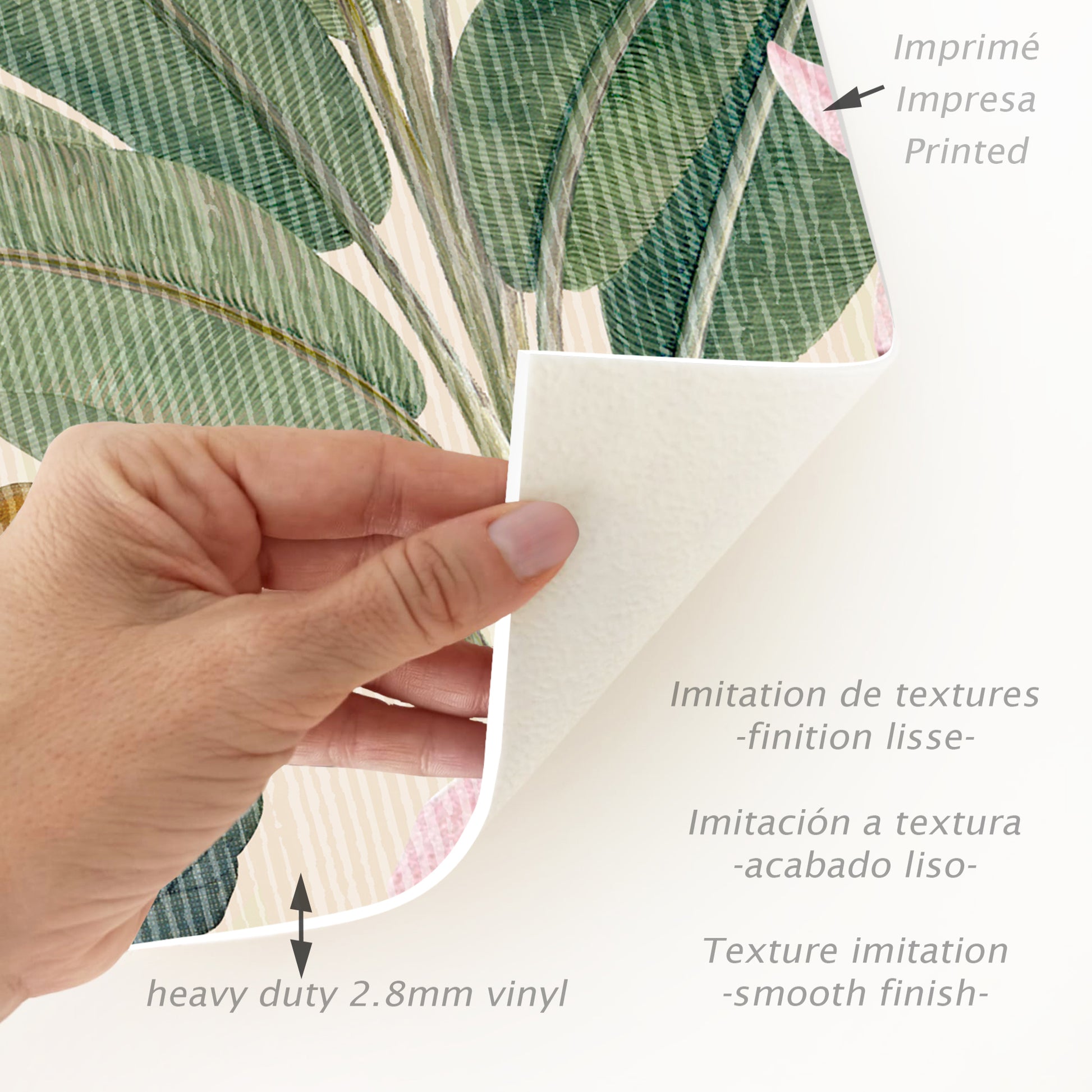 • Le matériau est antidérapant, hypoallergénique, antimicrobien, imperméable, isolant thermique et ignifuge. Il est exempt de phtalates et de BPA et imprimé avec des encres durables, contribuant ainsi à une maison plus sûre et sans produits toxiques.