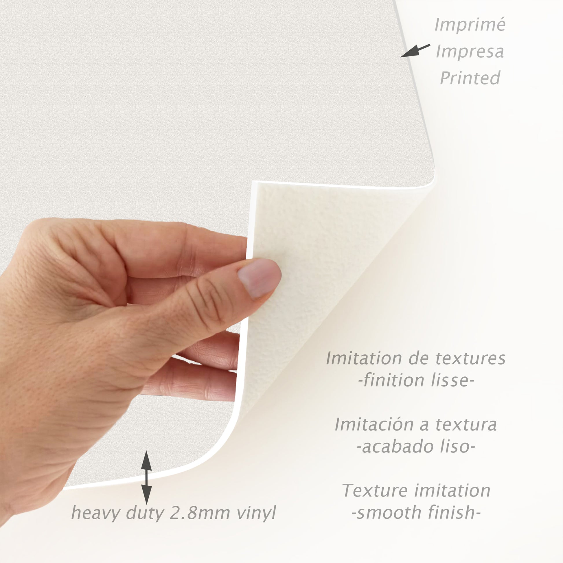 Nos tapis ne sont pas en tissu, ils sont en vinyle de haute qualité et durable. Le vinyle est une matière synthétique reconnue pour sa résistance et sa polyvalence. Contrairement aux tapis en tissu traditionnels, les tapis en vinyle offrent une impression photographique haute fidélité, recréant des textures naturelles avec une précision étonnante, comme le jute, le bois ou le marbre.