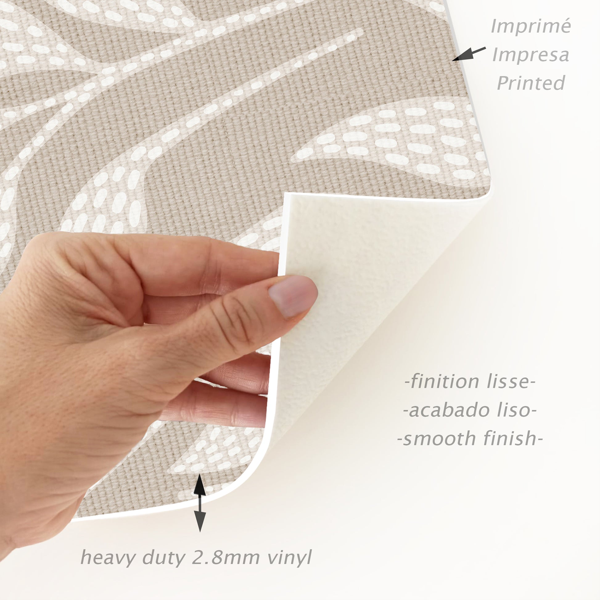 • Le matériau est antidérapant, hypoallergénique, antimicrobien, imperméable, isolant thermique et ignifuge. Il est exempt de phtalates et de BPA et imprimé avec des encres durables, contribuant ainsi à une maison plus sûre et sans produits toxiques.