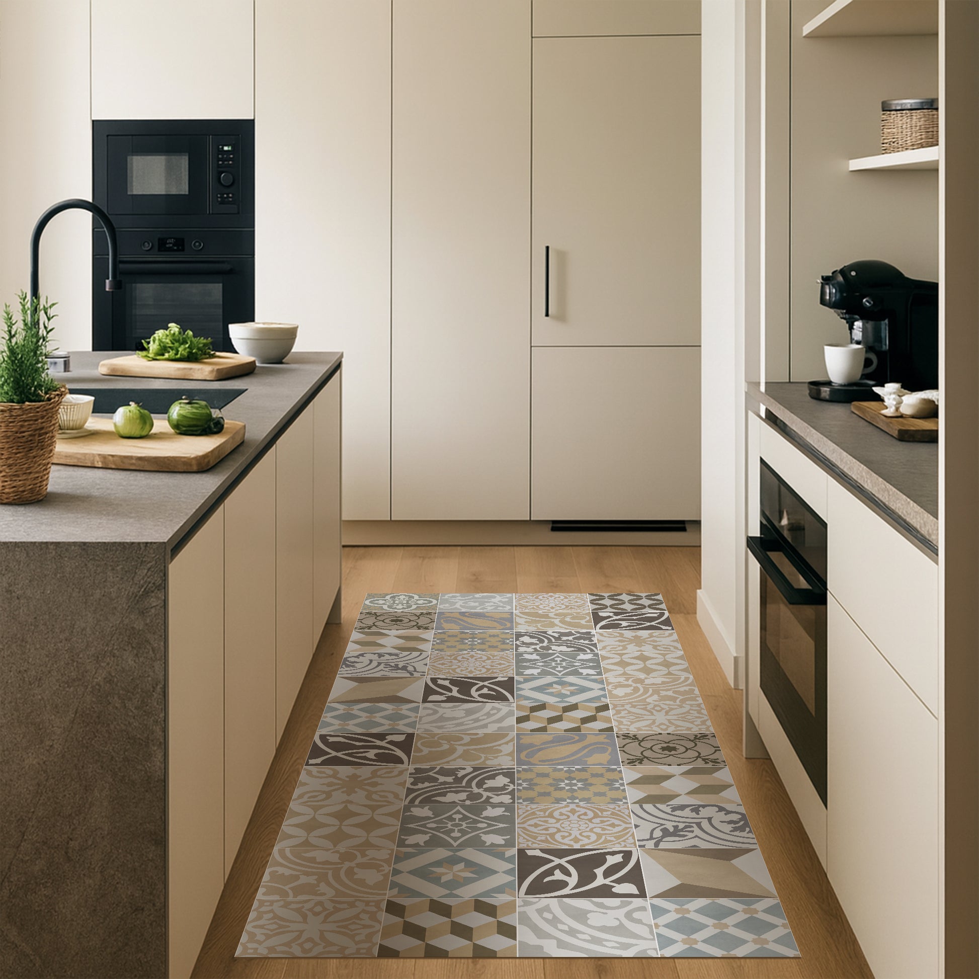 Nuestras alfombras no son de tela, son de vinilo de alta calidad y durabilidad. El vinilo es un material sintético conocido por su resistencia y versatilidad. A diferencia de las alfombras tradicionales de tela, las alfombras de vinilo ofrecen una impresión fotográfica de alta fidelidad, recreando texturas naturales con una precisión asombrosa, como el yute, la madera o el mármol.