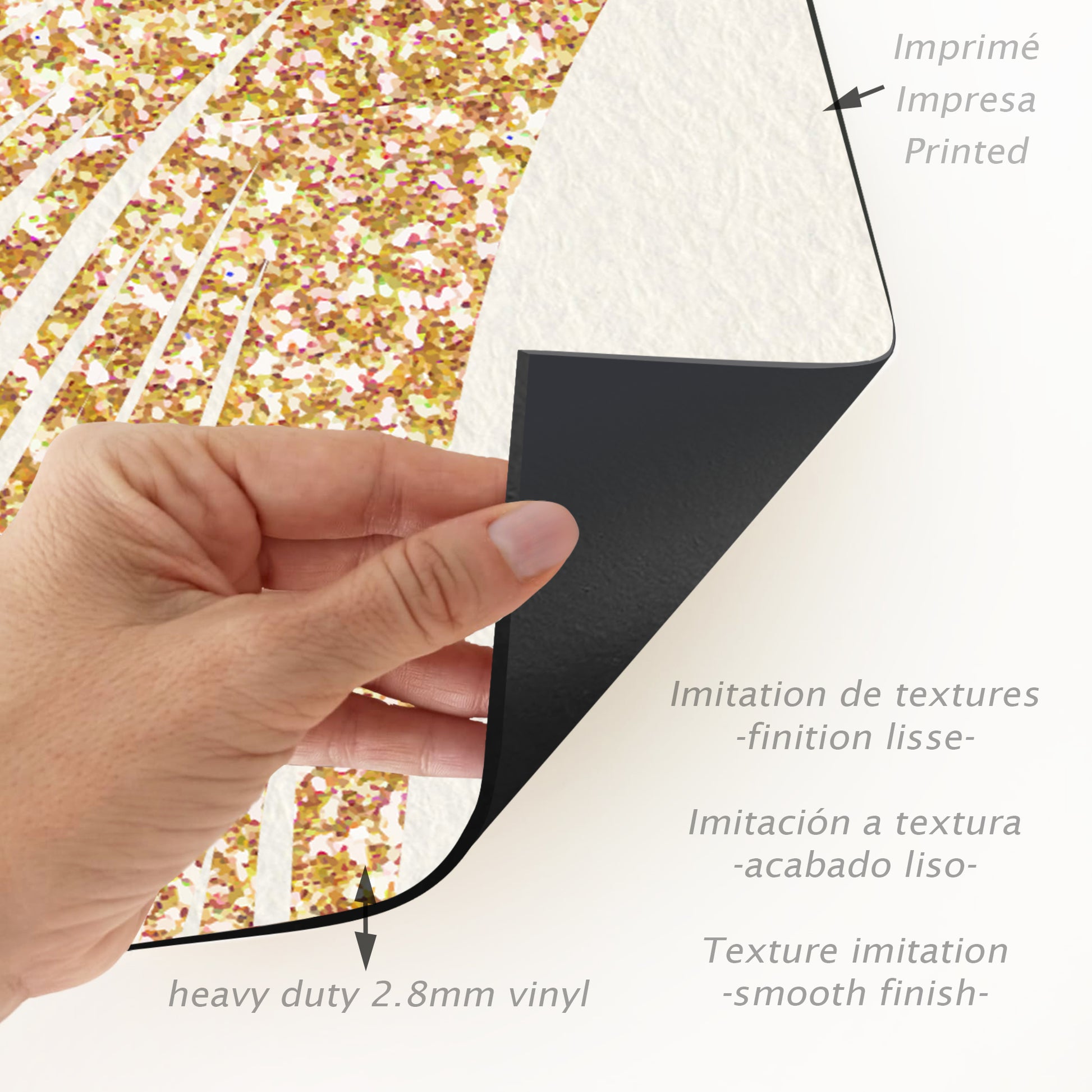 Nuestras alfombras no son de tela, son de vinilo de alta calidad y durabilidad. El vinilo es un material sintético conocido por su resistencia y versatilidad. A diferencia de las alfombras tradicionales de tela, las alfombras de vinilo ofrecen una impresión fotográfica de alta fidelidad, recreando texturas naturales con una precisión asombrosa, como el yute, la madera o el mármol.